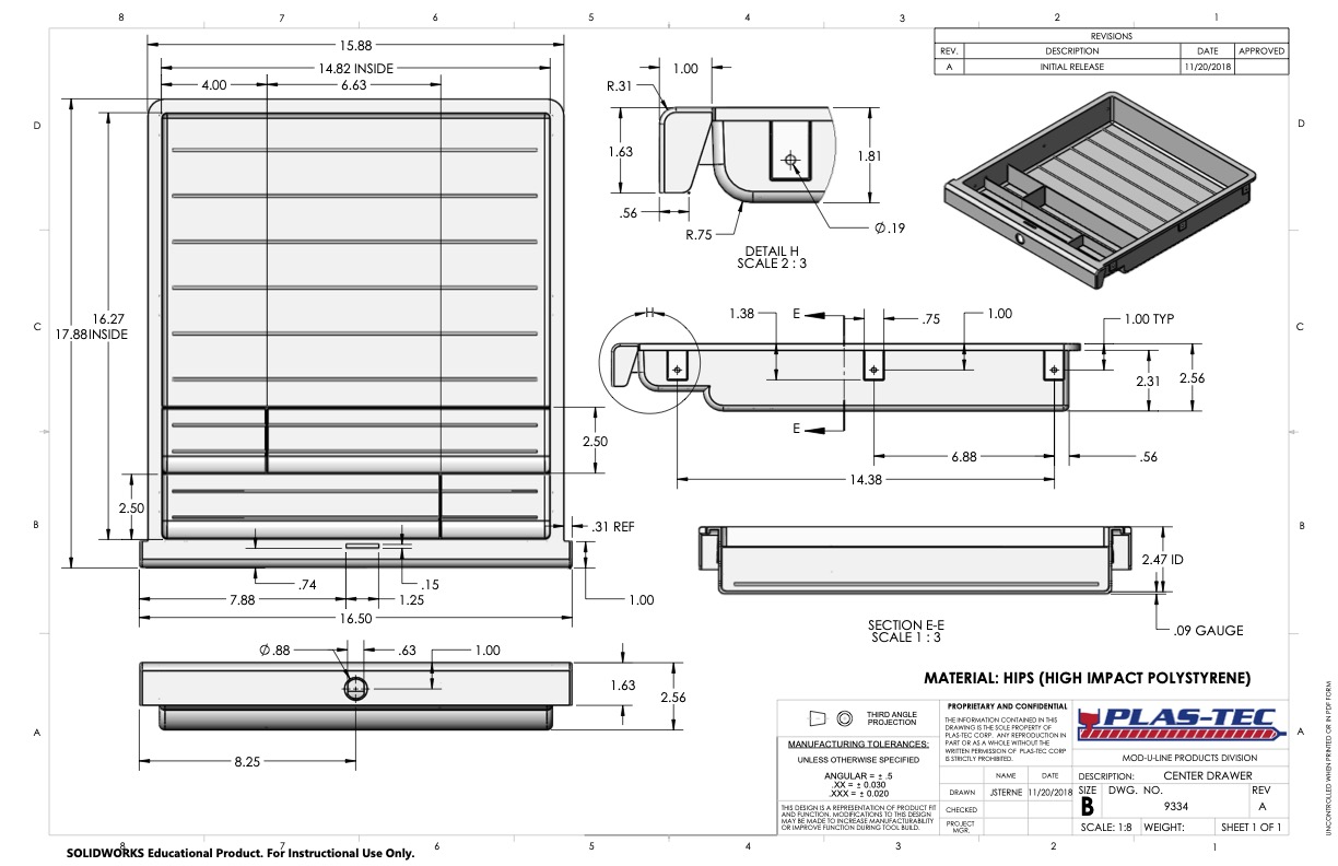 Dimensions: 16.5″ width x 17.75″ depth x 2.88″ height